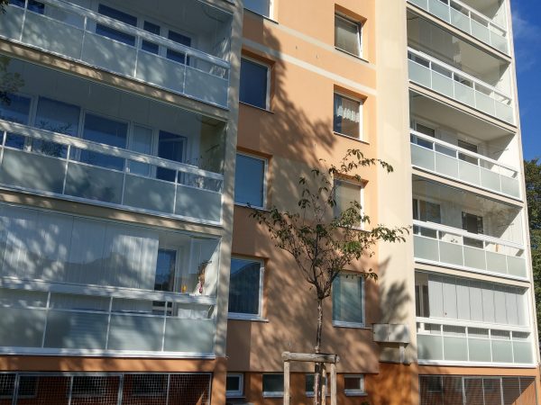 VíceKompletní rekonstrukce lodžií s rozšířením včetně zábradlí a zasklení systémem ALUMISTR na bytovém domě již zatepleném Na Radouči 1079 – 1080